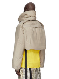 DRKSHDW FW25 CONCORDIANS CONVERTIBLE JKT CROPPED IN DIRTY PEARL RECYCLED NYLON THIS CONVERTIBLE JKT CROPPED IS WAIST LENGTH WITH LONG SLEEVES. IT HAS A CENTER FRONT ZIPPER WITH TOP SNAP AND SHOULDER SNAPS, ENABLING THE SHOULDERS TO BE WORN FOLDED DOWN. IT FEATURES A REMOVABLE, HIGH FUNNEL COLLAR WITH SNAP FASTENINGS ON NECK. WHEN REMOVED IT REVEALS A RIBBED COLLAR AND VISIBLE SNAPS. IT HAS A COTTON WEBBING STRAP WITH RIVET DETAIL ON THE BACK YOKE. IT IS FULLY LINED AND HAS INTERNAL SNAP POCKETS. THIS AIRY AND LIGHTWEIGHT NYLON IS MADE USING GRS CERTIFIED RECYCLED NYLON WHICH ENSURES A REDUCTION IN WATER CONSUMPTION, EMISSIONS AND HAZARDOUS WASTE, LESSENING THE DEPENDENCE ON NON-RENEWABLE RESOURCES COLOR: DIRTY PEARL MATERIAL: 100% NYLON KNIT RIB COLLAR + WRIST BAND 98% COTTON + 2% ELASTANE PADDING 100% POLYESTER MODEL IS 189CM TALL MODEL WEARS SIZE S