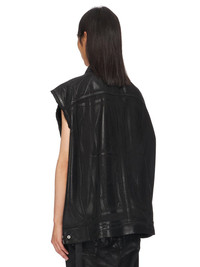 RICK OWENS SS23 EDFU SL JUMBO WORKER JKT IN 13OZ BLACK FOIL DENIM THIS SL JUMBO WORKER JACKET IS BELOW HIP LENGTH, JUMBO OVERSIZED AND SLEEVELESS. IT FEATURES A CENTRE FRONT PLACKET WITH VISIBLE BUTTONS AND A CLASSIC COLLAR. IT HAS A WAISTBAND HEM WITH BUTTON DETAIL, SIDE POCKETS, AND DOUBLE TOP STITCHING ON ALL SEAMS. IT HAS TWO INTERNAL POCKETS THIS 13OZ JAPANESE SELVEDGE DENIM HAS AN ALL-OVER BLACK FOIL TREATMENT APPLIED ON THE FINISHED GARMENT BY HAND - COLOR: BLACK - MATERIAL: 100% COTTON - POCKETS LINING 52% POLYESTER + 48% COTTON - MODEL IS WEARING SIZE S - MODEL IS 189 CM TALL