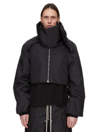 DRKSHDW FW25 CONCORDIANS CONVERTIBLE JKT CROPPED IN BLACK NYLON CANVAS THIS CONVERTIBLE JKT CROPPED IS WAIST LENGTH WITH LONG SLEEVES. IT HAS A CENTER FRONT ZIPPER WITH TOP SNAP AND SHOULDER SNAPS, ENABLING THE SHOULDERS TO BE WORN FOLDED DOWN. IT FEATURES A REMOVABLE, HIGH FUNNEL COLLAR WITH SNAP FASTENINGS ON NECK. WHEN REMOVED IT REVEALS A RIBBED COLLAR AND VISIBLE SNAPS. IT HAS A COTTON WEBBING STRAP WITH RIVET DETAIL ON THE BACK YOKE. IT IS FULLY LINED AND HAS INTERNAL SNAP POCKETS. THIS MEDIUMWEIGHT NYLON CANVAS IS COMPACT WITH A SOFT AND TECHNICAL HANDFEEL THIS FABRIC IS MADE USING GRS CERTIFIED RECYCLED NYLON WHICH ENSURES A REDUCTION IN WATER CONSUMPTION, EMISSIONS AND HAZARDOUS WASTE, LESSENING THE DEPENDENCE ON NON-RENEWABLE RESOURCES COLOR: BLACK MATERIAL: 100% NYLON KNIT RIB COLLAR + WRIST BAND 100% COTTON SLEEVES LINING 100% NYLON MODEL IS 189CM TALL MODEL WEARS SIZE S