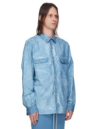 RICK OWENS SS25 HOLLYWOOD JUMBO OUTERSHIRT IN TOOTHPASTE FOIL COTTON POPLIN THIS LIGHTWEIGHT POPLIN HAS A SOFT HANDFEEL AND WASHED FINISH. THIS GARMENT HAS BEEN GARMENT DYED AND HAS A CLEAR, SEMI SHINY FOIL OVERLAY THAT CREATES A WAXY TOUCH SINCE THE FOIL IS PRESSED ON TOP OF THE FINAL GARMENTS, EACH PIECE WILL HAVE ITS OWN UNIQUE LOOK AND CREASES SINCE THE FOIL WILL ATTACH TO DIFFERENT PLACES DEPENDING ON THE GARMENT THIS FABRIC IS MADE USING GOTS CERTIFIED ORGANIC COTTON WHICH MEANS THE NATURAL FIBER IS GROWN WITHOUT HARMFUL CHEMICALS, LEAVING OUR SOIL, AIR AND WATER CLEANER FROM CONTAMINATES