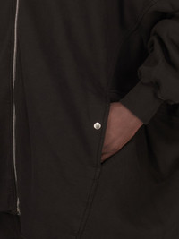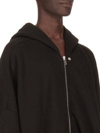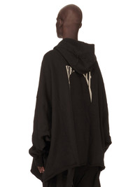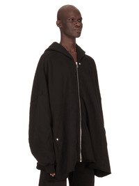 RICK OWENS FW24 PORTERVILLE JUMBO HOODED PETER IN BLACK/PEARL FURKA SWEATSHIRT THIS JUMBO HOODED PETER JACKET IS BELOW HIP LENGTH AND AN OVERSIZE FIT. IT A CENTRE FRONT OPENING WITH CONCEALED SNAPS, LONG SLEEVES WITH LOW SHOULDERS AND A DROPPED ARMHOLE, TWO LARGE SQUARE SIDE FRONT POCKETS, AND A HOOD. IT IS FULLY LINED WITH TWO INTERNAL ZIPPED POCKETS THIS HEAVYWEIGHT COTTON SWEATSHIRT JERSEY HAS A SOFT AND WASHED HANDFEEL. THIS JERSEY IS GARMENT DYED. THIS FABRIC IS MADE USING GOTS CERTIFIED ORGANIC COTTON WHICH MEANS THE NATURAL FIBER IS GROWN WITHOUT HARMFUL CHEMICALS, LEAVing OUR SOIL, AIR AND WATER CLEANER FROM CONTAMINATES - COLOR: BLACK/PEARL - MATERIAL: 100% COTTON - MODEL IS 189CM TALL - MODEL WEARS SIZE S