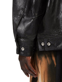 RICK OWENS FW24 PORTERVILLE JUMBO WORKER IN BLACK 13OZ MEGACRUST DENIM THIS JUMBO WORKER JACKET IS HIP LENGTH AND OVERSIZED WITH LONG SLEEVES. IT FEATURES A CENTRE FRONT PLACKET WITH VISIBLE BUTTONS, A CLASSIC COLLAR AND BUTTONED CUFFS. IT HAS A FRONT AND BACK YOKE, VERTICAL SEAMED PANELS, SIDE FRONT POCKETS, A WAISTBAND HEM WITH BUTTON DETAIL AND DOUBLE TOP STITCHING ON ALL SEAMS. IT IS UNLINED WITH TWO INTERNAL POCKETS THIS MEDIUMWEIGHT MEGACRUST DENIM IS MADE ON A 13OZ BLACK AND NATURAL JAPANESE DENIM. THE READY GARMENT IS OVERDYED BLACK AND TREATED WITH A WAX FINISH, THEN SEVERAL LAYERS OF BLACK FOIL IS PRESSED ON TOP AND A FINAL WASH MAKES THE FOIL PEEL AND CRACK. THE NATURAL ASPECTS OF THIS TREATMENT MEANS THE FOIL HAS PEELED OFF AND CRACKED IN CERTAIN AREAS AND WILL CONTINUE TO DO SO WITH WEAR AND ABRASION. THIS IS AN INHERENT CHARACTERISTIC OF THIS TYPE OF TREATMENT AND IS A DESIRED A VISUAL ASPECT WHICH ADDS TO THE UNIQUENESS OF EACH PIECE. THIS GARMENT IS TREATED IN AN ITALIAN WASH HOUSE BASED IN THE VENETO AREA OF ITALY, THAT PRODUCES IN SMALLER TREATMENT BATHS TO REDUCE WATER WASTE AND UTILIZE A WATER PURIFYING PROCESS THAT ENABLES THEM TO RECYCLE A PORTION OF THE WATER USED THIS GARMENT IS TREATED IN AN ITALIAN WASH HOUSE BASED IN THE VENETO AREA OF ITALY, THAT PRODUCES IN SMALLER TREATMENT BATHS TO REDUCE WATER WASTE AND UTILIZE A WATER PURIFYING PROCESS THAT ENABLES THEM TO RECYCLE A PORTION OF THE WATER USED. ALL OF OUR DENIM WASHES ARE ZDHC CERTIFIED - COLOR: BLACK - MATERIAL: 100% COTTON - BAND 91% COTTON + 6% ELASTOMULTIESTER + 3% RUBBER - POCKETS LINING 52% POLYESTER + 48% COTTON - MODEL IS 189CM TALL - MODEL WEARS SIZE S