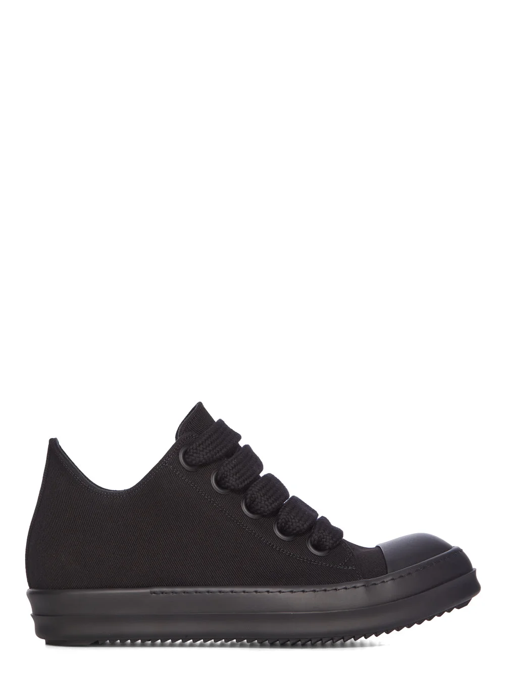 DRKSHDW SS26 TEMPLE JUMBOLACE LOW SNEAKS IN ALL BLACK 13OZ OVERDYED DENIM THESE JUMBOLACE LOW SNEAKS ARE UNDER ANKLE HEIGHT AND FEATURE EYELETS, JUMBO LACES, TOE CAPS AND SHARK TOOTH SOLES. THIS MEDIUMWEIGHT 13OZ DENIM IS OVERDYED AND HAS A SOFT AND WASHED HANDFEEL. THIS FABRIC IS MADE USING GOTS CERTIFIED ORGANIC COTTON WHICH MEANS THE NATURAL FIBER IS GROWN WITHOUT HARMFUL CHEMICALS, LEAVING OUR SOIL, AIR AND WATER CLEANER FROM CONTAMINATES. COLOR: ALL BLACK MATERIAL:UPPER 100% COTTON TOE 70% POLYURETHANE + 30% VISCOSE LINING 100% COTTON SOLE 100% THERMOPLASTIC RUBBER SOLE HEIGHT 3.5CM