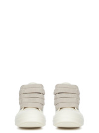 DRKSHDW SS26 TEMPLE JUMBOLACE LOW SNEAKS IN MILK/MILK/MILK 13OZ OVERDYED DENIM THESE JUMBOLACE LOW SNEAKS ARE UNDER ANKLE HEIGHT AND FEATURE EYELETS, JUMBO LACES, TOE CAPS AND SHARK TOOTH SOLES. THIS MEDIUMWEIGHT 13OZ DENIM IS OVERDYED AND HAS A SOFT AND WASHED HANDFEEL. THIS FABRIC IS MADE USING GOTS CERTIFIED ORGANIC COTTON WHICH MEANS THE NATURAL FIBER IS GROWN WITHOUT HARMFUL CHEMICALS, LEAVING OUR SOIL, AIR AND WATER CLEANER FROM CONTAMINATES. COLOR: MILK/MILK/MILK MATERIAL:UPPER 100% COTTON TOE 70% POLYURETHANE + 30% VISCOSE LINING 100% COTTON SOLE 100% THERMOPLASTIC RUBBER SOLE HEIGHT 3.5CM