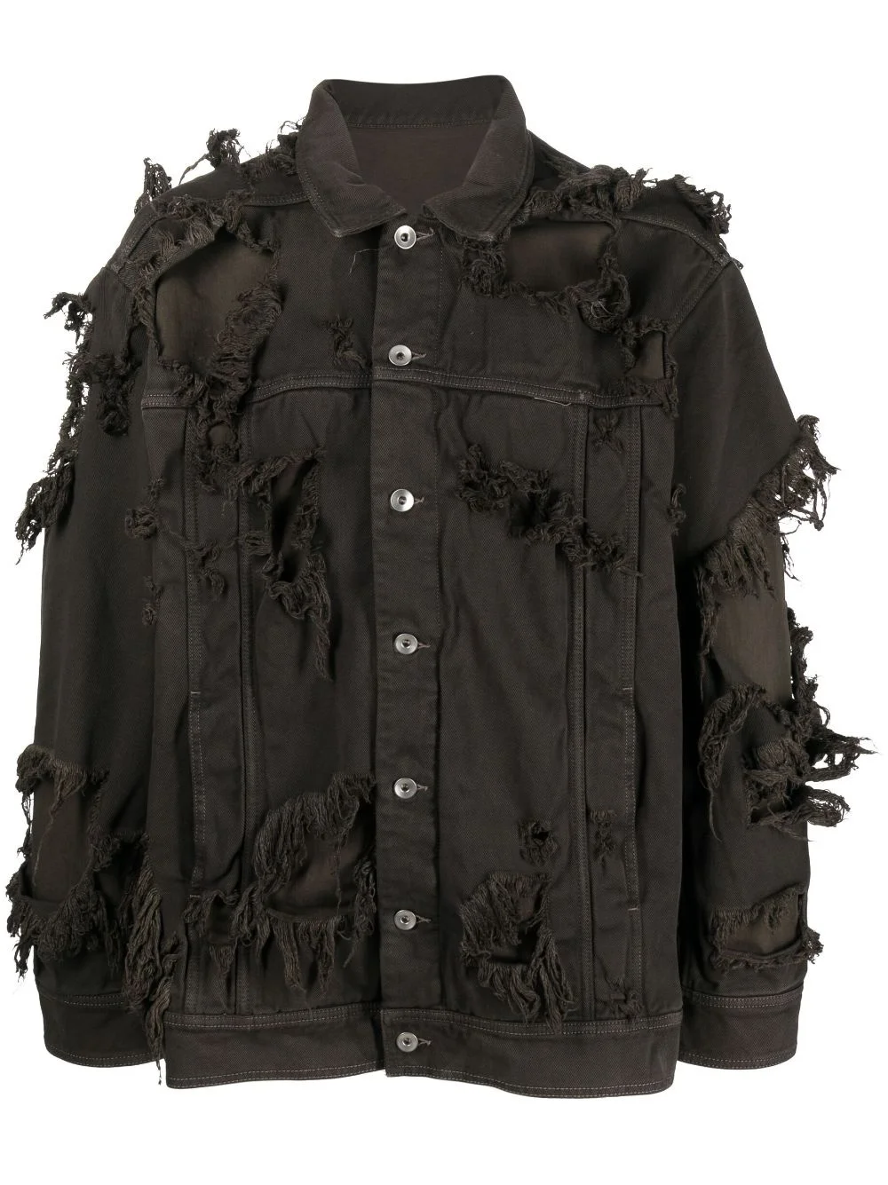 layered detailed jacket Highlights - Cedar brown - Cotton blend - Ripped detailing - Distressed effect - Classic collar - Front button fastening - Two side inset pockets - Long sleeves - Buttoned cuffs - Straight hem Made in Italy Composition Outer: Cotton 100% Lining: Cotton 90%, Polyester 7%, Rubber 3% SIZE & FIT Model measurements Height 6 ft 1 in(1.85 m) Bust/Chest 38.58 in(98 cm) Hips 37 in(94 cm) Waist 30.31 in(77 cm) FittingInformation Designed to be unstructured, offering a loose fit throughout Sturdy and hard-wearing, this denim piece offers no stretch This piece fits true to size – take your usual size Washing instructions Hand Wash