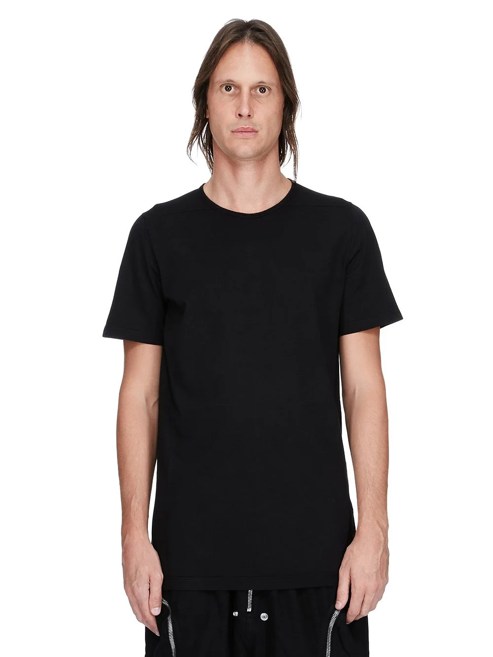 DRKSHDW FW25 CONCORDIANS LEVEL T IN BLACK MEDIUM WEIGHT COTTON JERSEY THIS LEVEL T IS BELOW HIP LENGTH, WITH SHORT SLEEVES AND A RIBBED CREW NECK. IT FEATURES SIGNATURE FRONT LEVEL SHOULDER SEAMS AND A CENTRE BACK SEAM. THIS MEDIUMWEIGHT COTTON JERSEY HAS A COMPACT AND DRY HANDFEEL. THIS JERSEY IS GARMENT DYED. THIS FABRIC IS MADE USING GOTS CERTIFIED ORGANIC COTTON WHICH MEANS THE NATURAL FIBER IS GROWN WITHOUT HARMFUL CHEMICALS, LEAVING OUR SOIL, AIR AND WATER CLEANER FROM CONTAMINATES. COLOR: BLACK MATERIAL: 100% COTTON MODEL IS 189CM TALL MODEL WEARS SIZE S