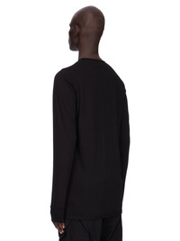 DRKSHDW FW25 CONCORDIANS LEVEL LS T IN BLACK MEDIUM WEIGHT COTTON JERSEY THIS LEVEL LS T IS BELOW HIP LENGTH WITH LONG SLEEVES, A RIBBED CREW NECK AND CUFFS. IT FEATURES SIGNATURE FRONT LEVEL SHOULDER SEAMS AND A CENTRE BACK SEAM. THIS MEDIUMWEIGHT COTTON JERSEY HAS A COMPACT AND DRY HANDFEEL. THIS JERSEY IS GARMENT DYED THIS FABRIC IS MADE USING GOTS CERTIFIED ORGANIC COTTON WHICH MEANS THE NATURAL FIBER IS GROWN WITHOUT HARMFUL CHEMICALS, LEAVING OUR SOIL, AIR AND WATER CLEANER FROM CONTAMINATES COLOR: BLACK MATERIAL:100% COTTON MODEL IS 189CM TALL MODEL WEARS SIZE S
