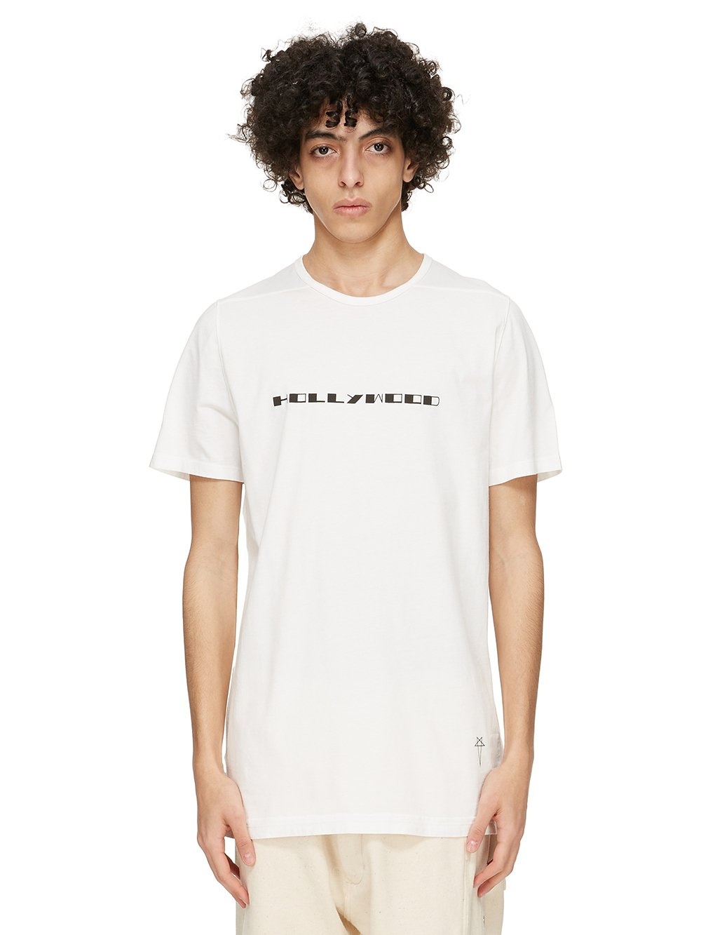 DRKSHDW SS25 HOLLYWOOD LEVEL T IN WHITE/BLACK MEDIUM WEIGHT COTTON JERSEY THIS LEVEL T IS BELOW HIP LENGTH, WITH SHORT SLEEVES AND A RIBBED CREW NECK. IT FEATURES SIGNATURE FRONT LEVEL SHOULDER SEAMS AND A CENTRE BACK SEAM. THIS VERSION FEATURES THE HOLLYWOOD PRINT THIS MEDIUMWEIGHT COTTON JERSEY HAS A COMPACT AND DRY HANDFEEL. THIS JERSEY IS GARMENT DYEDTHIS FABRIC IS MADE USING GOTS CERTIFIED ORGANIC COTTON WHICH MEANS THE NATURAL FIBER IS GROWN WITHOUT HARMFUL CHEMICALS, LEAVING OUR SOIL, AIR AND WATER CLEANER FROM CONTAMINATES COLOR: BLACK/PEARL MATERIAL: 100% COTTON MODEL IS 189CM TALL MODEL WEARS SIZE S