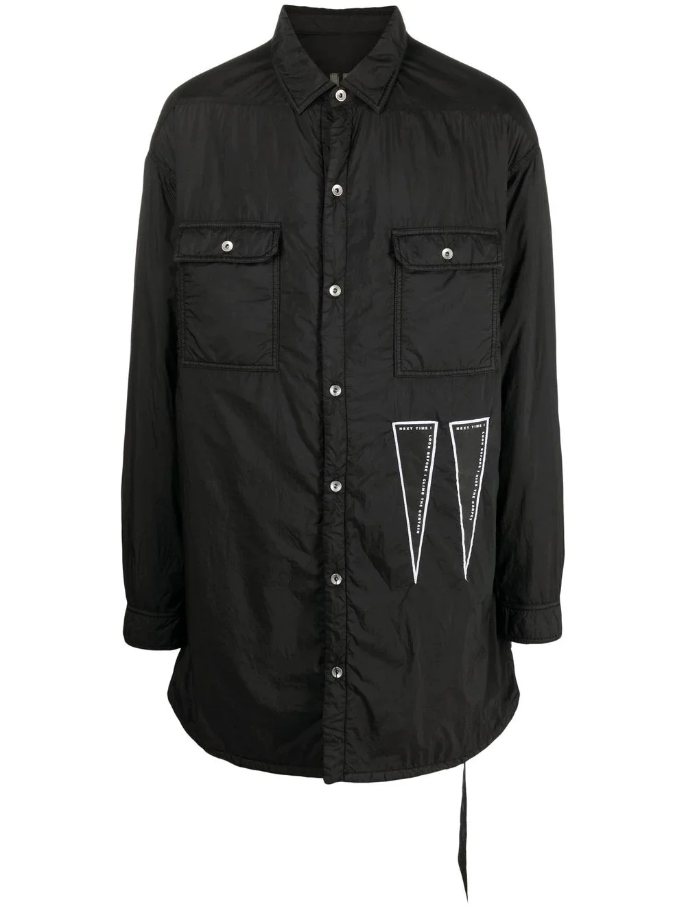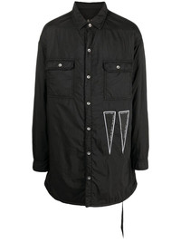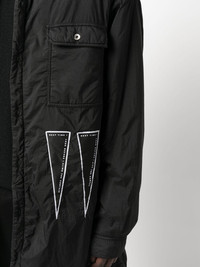 long shirt jacket core black patch detail to the front classic collar front button fastening long sleeves buttoned cuffs two button-fastening chest pockets long length Made in Italy Composition Outer: Polyamide 100% Lining: Polyester 100% Washing instructions Hand Wash