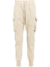 Mastodon Cut cargo track pants Highlights - Light beige - Cotton - Jersey texture - Elasticated drawstring waistband - Two side slash pockets - Two side cargo pockets - Two rear flap pockets - Tapered leg - Ribbed ankles Made in Italy Composition Cotton 100% SIZE & FIT Model measurements Height 6 ft 2 in(1.87 m) Bust/Chest 34.25 in(87 cm) Hips 36.22 in(92 cm) Waist 29.52 in(75 cm) FittingInformation Designed for a relaxed tapered leg, allowing a comfortable loose fit above the knee with a closer fit towards the calves The ribbed hem at the ankle offers a close, comfortable fit Made from a midweight non-stretch fabric, this piece offers minimal elasticity when worn This piece fits true to size – take your usual size