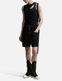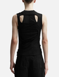 - Rick Owens Drkshdw - Membrane I - Sleeveless - Above-hip length - Lightweight and airy cotton gauze jersey fabric - Ribbed crewneck - Level shoulder seams - Designed to be layered with membranes II and III - Asymmetrical round cut outs at front and rear - Semi-transparent - Garment dyed - Color: Black - Material: 100% Cotton - See more Tops and Clothing SIZING - Model wears size S - Model measures: Height 187cm, Chest 36”/91cm, Waist 29”/74cm, Hip 37”/94cm