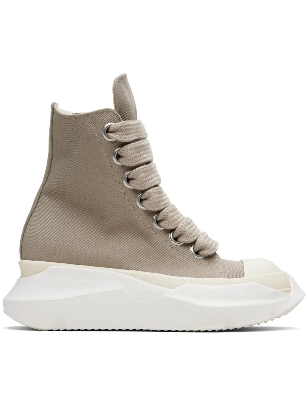 High-top overdyed 13 oz non-stretch organic cotton denim sneakers. · GOTS-certified organic cotton · Rubber cap toe · Lace-up closure · Sculptural rubber platform midsole · Treaded rubber sole · Platform: H2.5" Supplier color: Pearl/Pearl/Milk Upper: organic cotton. Sole: rubber. Made in Italy 252126M236002