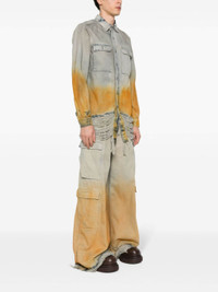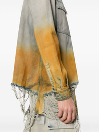blue/orange cotton washed denim ombré effect distressed effect classic collar long sleeves buttoned cuffs two button-fastening chest pockets asymmetric hem front button fastening Size & Fit Model Measurements: Height: 1.87 m Bust/Chest: 93.0 cm Hips: 92.0 cm Waist: 76.0 cm Model wears size S Fabric and Care Designer Style ID: DU01D1755DKYDFR Designer Colour: 4653D SKY/ORANGE DEGRADE Composition: Outer: Cotton 100%; Lining: Polyester 52%, Cotton 48% Washing instructions: Hand Wash Made in Italy