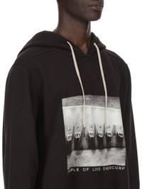 DRKSHDW SS26 TEMPLE OVERSIZED HOODIE IN BLACK/MILK FURKA HEAVY SWEATSHIRT JERSEY THIS OVERSIZED HOODIE IS HIP-LENGTH, WITH A LOOSE FIT AND LONG SLEEVES. IT HAS A HOOD WITH A DRAWSTRING, RIBBED CUFFS AND WAISTBAND. IT FEATURES THE SIGNATURE LEVEL SHOULDER SEAMS AND SINGLE SEAM RUNNING DOWN THE CENTRE BACK SPINE. THIS HEAVYWEIGHT COTTON SWEATSHIRT JERSEY HAS A SOFT AND WASHED HANDFEEL. THIS JERSEY IS GARMENT DYED. THIS FABRIC IS MADE USING GOTS CERTIFIED ORGANIC COTTON WHICH MEANS THE NATURAL FIBER IS GROWN WITHOUT HARMFUL CHEMICALS, LEAVING OUR SOIL, AIR AND WATER CLEANER FROM CONTAMINATES. COLOR: BLACK/MILK MATERIAL:100% COTTON MODEL IS 189CM TALL MODEL WEARS SIZE S