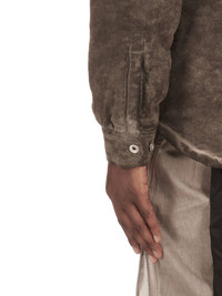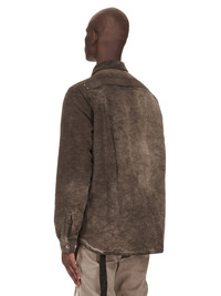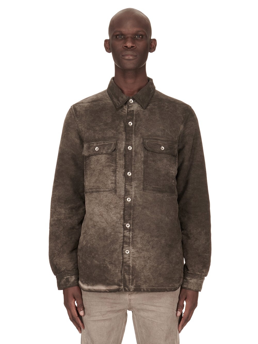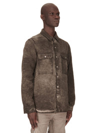 RICK OWENS FW24 PORTERVILLE OUTERSHIRT IN DUST COTTON MOLESKIN THIS OUTERSHIRT IS BELOW HIP LENGTH WITH A STRAIGHT FIT. IT HAS A CENTRE FRONT PLACKET WITH VISIBLE METAL BUTTONS, A CLASSIC COLLAR, A HEMLINE WITH BEVELED SIDES SEAMS AND SQUARE CHEST POCKETS WITH BUTTONS, AND BEVELED CORNER FLAPS. IT HAS LONG SLEEVES WITH BUTTONED CUFFS, SIGNATURE LEVEL SHOULDER SEAMS, A BACK YOKE AND DOUBLE TOP STITCHING ON ALL SEAMS THIS MEDIUMWEIGHT COTTON MOLESKIN IS GARMENT DYED WITH A SPECIALIZED TECHNIQUE WHICH CREATES THE IRREGULAR COLORATION. IT HAS A SOFT AND BRUSHED HANDFEEL. THE NATURAL ASPECTS OF THIS TREATMENT MEANS THAT THE FADED PARTS ARE DIFFERENT IN EACH GARMENT. THIS IS AN INHERENT CHARACTERISTIC OF THIS TYPE OF TREATMENT AND IS A DESIRED A VISUAL ASPECT WHICH ADDS TO THE UNIQUENESS OF EACH PIECE. THIS FABRIC IS MADE USING GOTS CERTIFIED ORGANIC COTTON WHICH MEANS THE NATURAL FIBER IS GROWN WITHOUT HARMFUL CHEMICALS, LEAVING OUR SOIL, AIR AND WATER CLEANER FROM CONTAMINATES - COLOR: DUST - MATERIAL: 100% COTTON - BODY LINING 100% COTTON - SLEEVES LINING 100% NYLON - PADDING 90% POLYESTER + 10% ACRYLIC - MODEL IS 189CM TALL - MODEL WEARS SIZE S
