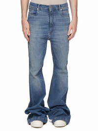 DRKSHDW SS25 HOLLYWOOD BOLAN BOOTCUT IN WASHED INDIGO WASHED INDIGO STRETCH DENIM THIS BOLAN BOOTCUT IS A HIGH WAISTED, SLIM FIT 6-POCKET JEAN WITH A FLOOR-LENGTH BOOT CUT. THEY HAVE A CONCEALED ZIPPER FLY WITH TOP BUTTON, A WAISTBAND WITH POCKET RIVETS AND REAR PATCH POCKETS WITH TOPSTITCHING THIS LIGHTWEIGHT WASHED INDIGO DENIM IS MADE ON A 10OZ INDIGO AND NATURAL STRETCH DENIM. THE READY GARMENT IS WASHED WITH MINERALS TO ACHIEVE THE FINAL LOOK. THIS FABRIC IS MADE USING OCS CERTIFIED ORGANIC COTTON WHICH MEANS THE NATURAL FIBER IS GROWN WITHOUT HARMFUL CHEMICALS, LEAVING OUR SOIL, AIR AND WATER CLEANER FROM CONTAMINATES THIS GARMENT IS TREATED IN AN ITALIAN WASH HOUSE BASED IN THE VENETO AREA OF ITALY, THAT PRODUCES IN SMALLER TREATMENT BATHS TO REDUCE WATER WASTE AND UTILIZE A WATER PURIFYING PROCESS THAT ENABLES THEM TO RECYCLE A PORTION OF THE WATER USED. ALL OF OUR DENIM WASHES ARE ZDHC CERTIFIED COLOR: WASHED INDIGO MATERIAL: 91% COTTON + 6% ELASTOMULTIESTER + 3% RUBBER POCKETS LINING 100% COTTON MODEL IS 189CM TALL MODEL WEARS SIZE 31