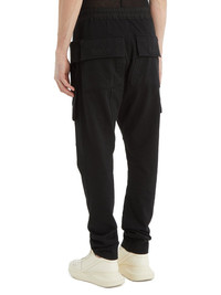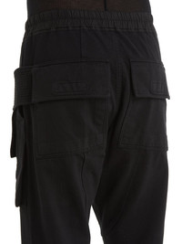 DRKSHDW SS22 FOGACHINE CREATCH CARGO DRAWSTRING IN COMPACT HEAVY COTTON JERSEY THESE CREATCH CARGO DRAWSTRING PANTS ARE FULL LENGTH, THEY HAVE AN ELASTICIZED WAISTBAND WITH DRAWSTRING AND STITCHED FLY. THEY FEATURE TWO FRONT POCKETS WITH SIDE BELT STRAPS WITH CREACH STITCHING LINES AND TWO FLAP POCKETS ON BACK A COMPACT HEAVY COTTON JERSEY GARMENT DYED WITH A LIGHTLY BRUSHED FINISH. THIS JERSEY IS MADE FROM GOTS CERTIFIED ORGANIC COTTON. WE CHOSE TO MAKE THIS GARMENT USING CERTIFIED ORGANIC COTTON BECAUSE IT MEANS THE NATURAL FIBER IS GROWN WITHOUT HARMFUL CHEMICALS, WHICH LEAVES OUR SOIL, AIR AND WATER CLEANER FROM CONTAMINATES - MATERIAL:100% COTTON - BAND 97% COTTON + 3% ELASTANE - MODEL IS WERING SIZE S - MODEL IS 189 CM TALL