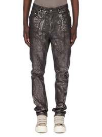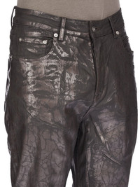 DRKSHDW FW25 CONCORDIANS DETROIT CUT IN IN BRONZE MEGACRUST STRETCH DENIM THESE DETROIT CUT JEANS ARE A SLIM FIT AND LOW-RISE 6 POCKET JEAN. THEY HAVE A CONCEALED BUTTON FLY, A WAISTBAND WITH BELT LOOPS AND POCKET RIVETS AND REAR PATCH POCKETS WITH TOPSTITCHING. THIS LIGHTWEIGHT BRONZE MEGACRUST DENIM IS MADE ON A 10OZ BLACK AND NATURAL STRETCH DENIM. THE READY GARMENT IS OVERDYED DRKDUST AND THEN TREATED WITH LAYERS OF BRONZE COLORED FOIL THAT IS PRESSED ON BY HAND THE NATURAL ASPECTS OF THIS TREATMENT MEANS THE FOIL APPLICATION IS IRREGULAR AND HAS PEELED OFF AND CRACKED IN CERTAIN AREAS AND WILL CONTINUE TO DO SO WITH WEAR AND ABRASION. THIS IS AN INHERENT CHARACTERISTIC OF THIS TYPE OF TREATMENT AND IS A DESIRED A VISUAL ASPECT WHICH ADDS TO THE UNIQUENESS OF EACH PIECE THIS GARMENT IS TREATED IN AN ITALIAN WASH HOUSE BASED IN THE VENETO AREA OF ITALY, THAT PRODUCES IN SMALLER TREATMENT BATHS TO REDUCE WATER WASTE AND UTILIZE A WATER PURIFYING PROCESS THAT ENABLES THEM TO RECYCLE A PORTION OF THE WATER USED. ALL OF OUR DENIM WASHES ARE ZDHC CERTIFIED COLOR: BRONZE MATERIAL: 91% COTTON + 6% ELASTOMULTIESTER + 3% RUBBER FIBER MODEL IS 189CM TALL MODEL WEARS SIZE 31