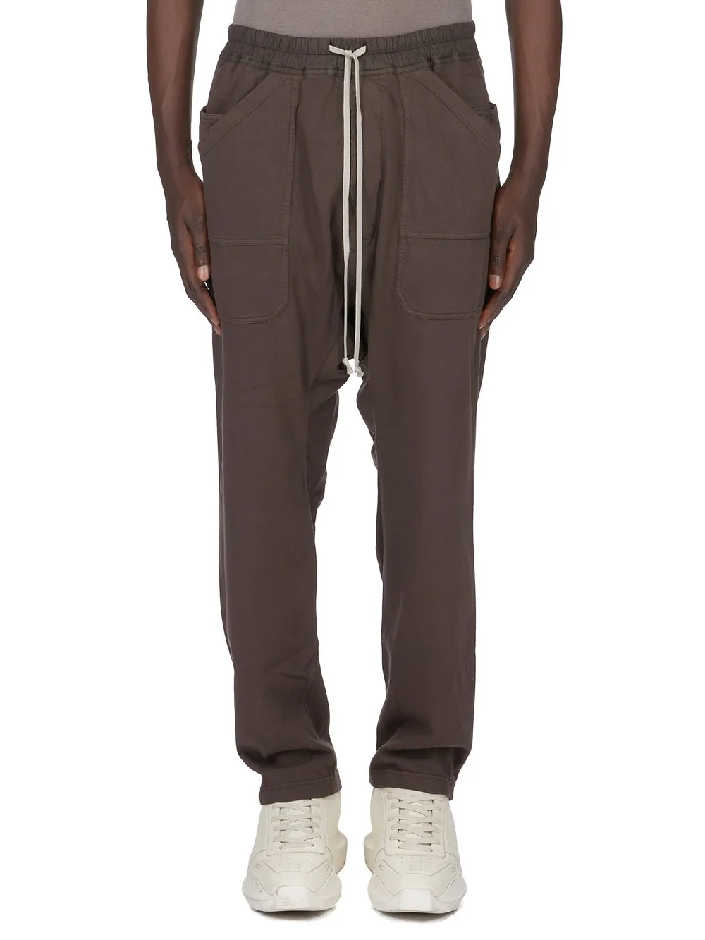 DRKSHDW FW25 CONCORDIANS CLASSIC CARGO DRAWSTRING IN DRKDUST COMPACT HEAVY JERSEY THESE CLASSIC CARGO DRAWSTRING PANTS ARE FULL LENGTH. THEY HAVE AN ELASTICIZED WAISTBAND WITH DRAWSTRING AND STITCHED FLY. THEY FEATURE TWO ANGULAR SIDE FRONT PATCH POCKETS AND TWO BACK SQUARE PATCH POCKETS WITH FLAPS. THIS HEAVYWEIGHT AND COMPACT COTTON JERSEY HAS A BRUSHED AND SOFT HANDFEEL. THIS JERSEY IS GARMENT DYED THIS FABRIC IS MADE USING GOTS CERTIFIED ORGANIC COTTON WHICH MEANS THE NATURAL FIBER IS GROWN WITHOUT HARMFUL CHEMICALS, LEAVING OUR SOIL, AIR AND WATER CLEANER FROM CONTAMINATES COLOR: DRKDUST MATERIAL:100% COTTON MODEL IS 189CM TALL MODEL WEARS SIZE S