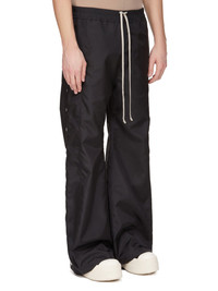 DRKSHDW FW25 CONCORDIANS PUSHER PANTS IN BLACK NYLON CANVAS THESE PUSHER PANTS ARE FLOOR LENGTH WITH A WIDE LEG AND A SLIGHTLY DROPPED CROTCH. THEY HAVE AN ELASTICIZED WAISTBAND WITH DRAWSTRING, SIDE FRONT JET POCKETS AND SQUARE BACK POCKETS WITH TOPSTITCHING. THEY FEATURE VISIBLE SNAP CLOSURES RUNNING DOWN THE OUTER LEG, ALLOWING THEM TO BE UNSNAPPED AND WORN OPEN. THIS MEDIUMWEIGHT NYLON CANVAS IS COMPACT WITH A SOFT AND TECHNICAL HANDFEEL THIS FABRIC IS MADE USING GRS CERTIFIED RECYCLED NYLON WHICH ENSURES A REDUCTION IN WATER CONSUMPTION, EMISSIONS AND HAZARDOUS WASTE, LESSENING THE DEPENDENCE ON NON-RENEWABLE RESOURCES COLOR: BLACK MATERIAL: 100% NYLON MODEL IS 189CM TALL MODEL WEARS SIZE S