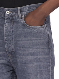 DRKSHDW FW25 CONCORDIANS BOLAN BOOTCUT IN 13OZ STONE WASHED GREY DENIM THIS BOLAN BOOTCUT IS A HIGH WAISTED, SLIM FIT 6-POCKET JEAN WITH A FLOOR-LENGTH BOOT CUT. THEY HAVE A CONCEALED ZIPPER FLY WITH TOP BUTTON, A WAISTBAND WITH POCKET RIVETS AND REAR PATCH POCKETS WITH TOPSTITCHING. THIS MEDIUMWEIGHT STONE WASHED GREY DENIM IS MADE ON A 13OZ JAPANESE GREY AND BLACK DENIM WOVEN IN FUKUYAMA PREFECTURE BY A MILL FOUNDED IN 1893. THE READY GARMENT IS STONE WASHED THIS GARMENT IS TREATED IN AN ITALIAN WASH HOUSE BASED IN THE VENETO AREA OF ITALY, THAT PRODUCES IN SMALLER TREATMENT BATHS TO REDUCE WATER WASTE AND UTILIZE A WATER PURIFYING PROCESS THAT ENABLES THEM TO RECYCLE A PORTION OF THE WATER USED. ALL OF OUR DENIM WASHES ARE ZDHC CERTIFIED COLOR: WASHED GREY MATERIAL: 100% COTTON POCKETS LINING 52% POLYESTER + 48% COTTON MODEL IS 189CM TALL MODEL WEARS SIZE 31