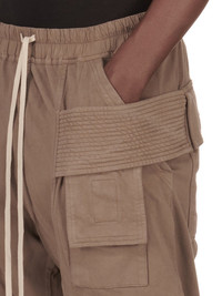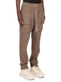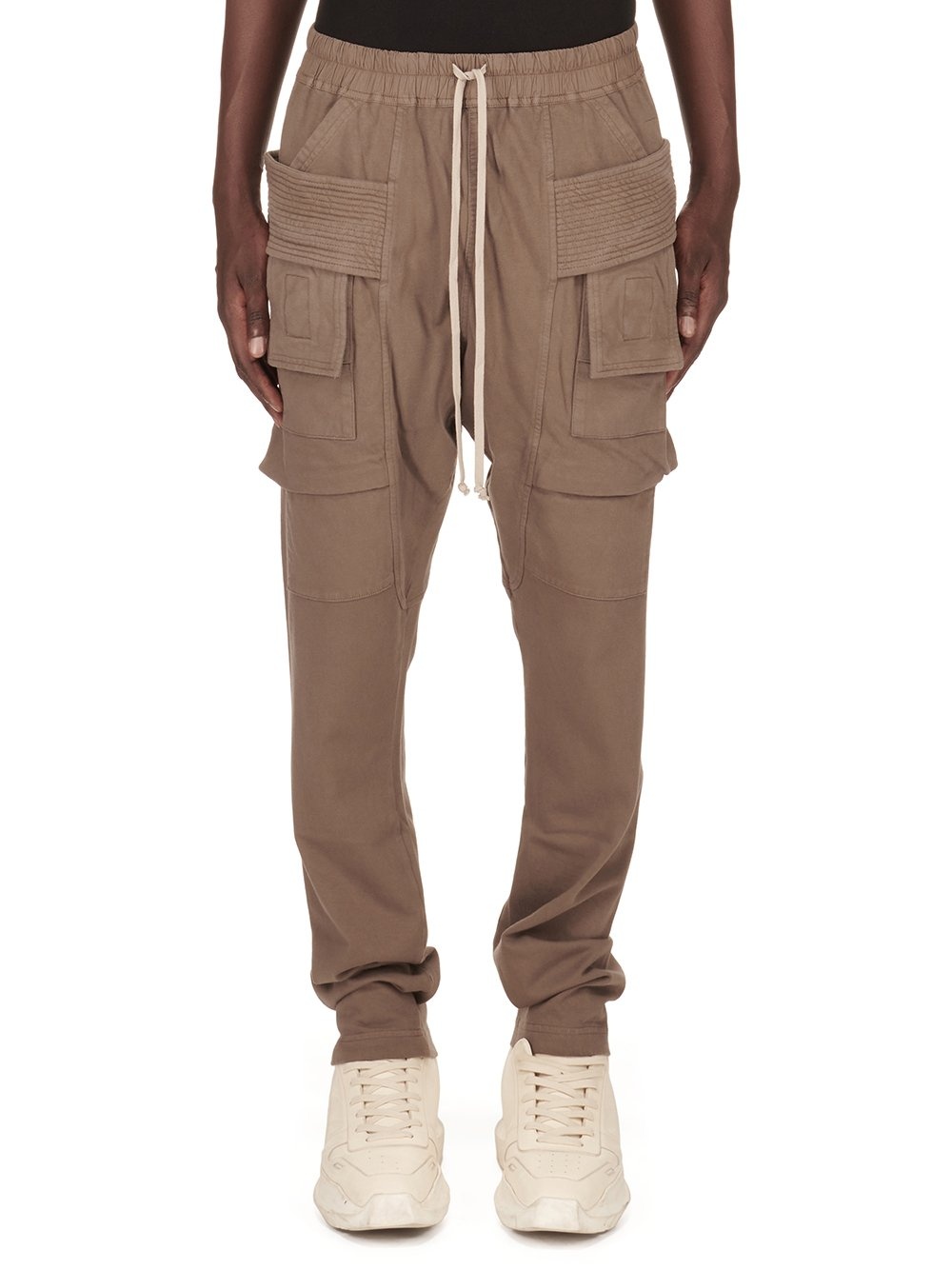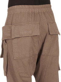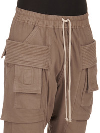 DRKSHDW FW24 PORTERVILLE CREATCH CARGO DRAWSTRING IN DUST COMPACT COTTON JERSEY THESE CREATCH CARGO DRAWSTRING PANTS ARE FULL LENGTH. THEY HAVE AN ELASTICIZED WAISTBAND WITH DRAWSTRING AND STITCHED FLY. THEY FEATURE LAYERED FRONT POCKETS WITH SIDE BELT STRAPS WITH SIGNATURE STITCHING LINES AND TWO BACK SQUARE PATCH POCKETS WITH FLAPS AND TOPSTITCHING THIS HEAVYWEIGHT AND COMPACT COTTON JERSEY HAS A BRUSHED AND SOFT HANDFEEL. THIS JERSEY IS GARMENT DYED. THIS FABRIC IS MADE USING GOTS CERTIFIED ORGANIC COTTON WHICH MEANS THE NATURAL FIBER IS GROWN WITHOUT HARMFUL CHEMICALS, LEAVING OUR SOIL, AIR AND WATER CLEANER FROM CONTAMINATES - COLOR: DUST - MATERIAL: 100% COTTON - BAND 97% COTTON + 3% ELASTANE - MODEL IS 189CM TALL - MODEL WEARS SIZE S