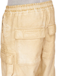 DRKSHDW SS25 HOLLYWOOD DOUBLE CARGO JUMBO BELAS IN PARCHMENT COTTON CANVAS THESE DOUBLE CARGO JUMBO BELA PANTS ARE FULL-LENGTH WITH A LOW CROTCH AND WIDE LEG. THEY FEATURE AN ELASTICIZED WAISTBAND WITH DRAWSTRING AND A BELA EXPOSED CENTER ZIPPER WITH TWO SNAP DETAIL, AND SIDE WELT POCKETS WITH RIVETS THEY FEATURE TWO BEVELED CARGO POCKETS ON THE THIGH, WITH TWO SQUARE CARGO POCKETS BELOW, AND TWO SQUARE BACK POCKETS, ALL HAVE FLAPS AND TOPSTITCHING THIS MEDIUMWEIGHT COTTON CANVAS IS COMPACT WITH A SOFT HANDFEEL. THIS GARMENT HAS BEEN GARMENT DYED. THIS FABRIC IS MADE USING GOTS CERTIFIED ORGANIC COTTON WHICH MEANS THE NATURAL FIBER IS GROWN WITHOUT HARMFUL CHEMICALS, LEAVING OUR SOIL, AIR AND WATER CLEANER FROM CONTAMINATES COLOR: PARCHMENT MATERIAL: 100% COTTON BAND 97% COTTON + 3% ELASTANE MODEL IS 189CM TALL MODEL WEARS SIZE S