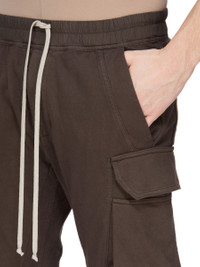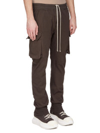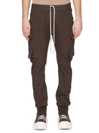 DRKSHDW FW25 CONCORDIANS MASTODON CUT IN DRKDUST COMPACT HEAVY JERSEY THESE MASTODON CUT PANTS ARE FULL LENGTH WITH A SLIM FIT. THEY HAVE AN ELASTICIZED WAISTBAND WITH DRAWSTRING AND ELASTICIZED CUFFS. THEY FEATURE TWO SIDE WELT POCKETS, TWO ZIPPERED CARGO POCKETS WITH BEVELED FLAPS ON THE OUTER THIGH, AND BACK PATCH POCKETS WITH FLAPS AND TOPSTITCHING. THIS HEAVYWEIGHT AND COMPACT COTTON JERSEY HAS A BRUSHED AND SOFT HANDFEEL. THIS JERSEY IS GARMENT DYED. THIS FABRIC IS MADE USING GOTS CERTIFIED ORGANIC COTTON WHICH MEANS THE NATURAL FIBER IS GROWN WITHOUT HARMFUL CHEMICALS, LEAVING OUR SOIL, AIR AND WATER CLEANER FROM CONTAMINATES. COLOR: DRKDUST MATERIAL: 100% COTTON BAND 97% COTTON + 3% ELASTANE MODEL IS 189CM TALL MODEL WEARS SIZE S
