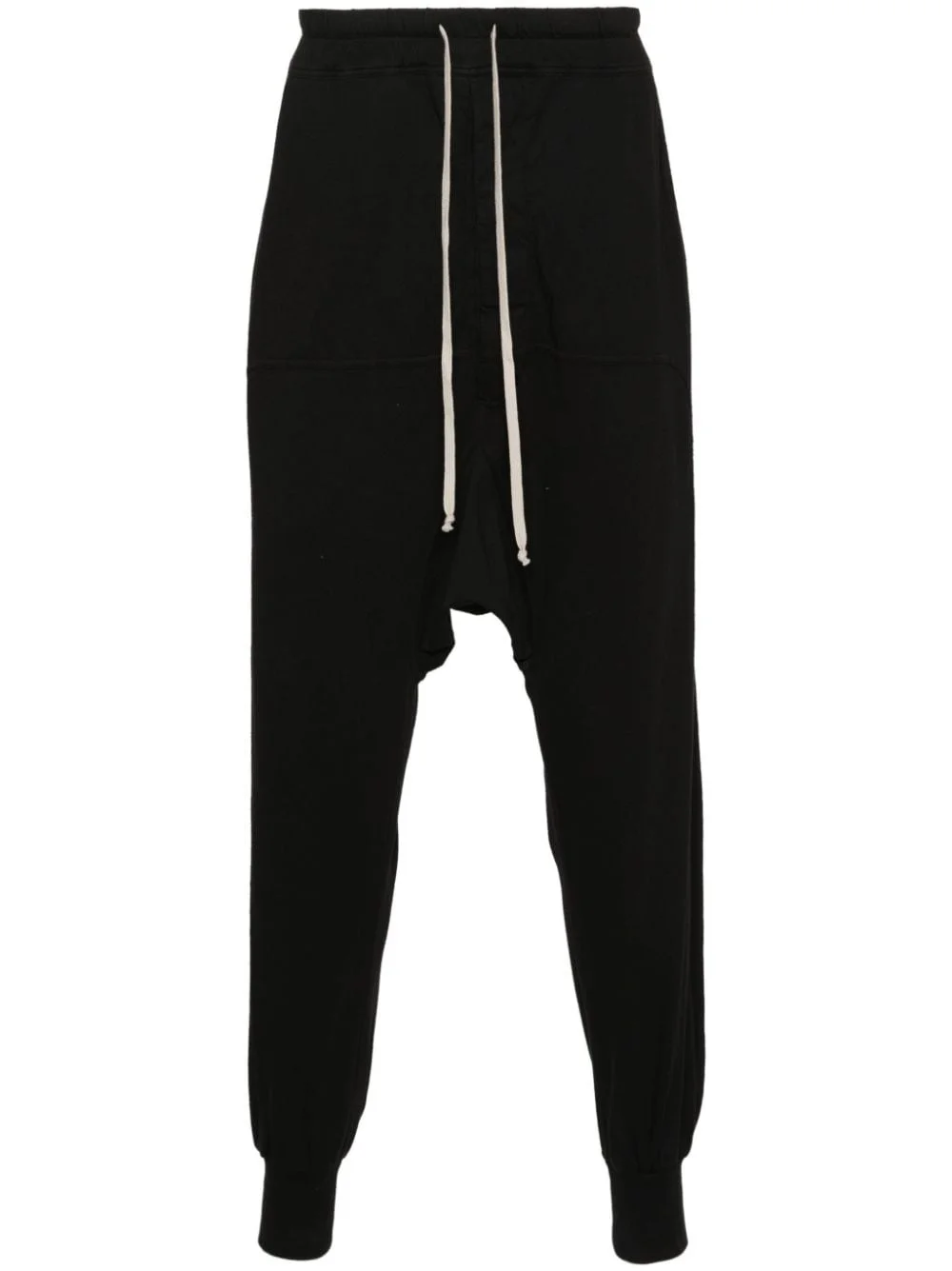 Prisoner cotton track pants Highlights - Black - Organic cotton - Jersey texture - Panelled design - Seam detailing - Mid-rise - Elasticated waistband - Drop crotch - Two rear flap pockets - Two side slash pockets with touch-strap fastening - Ribbed ankles - Unlined - Slim cut - Drawstring fastening waist - Concealed fly and button fastening Imported Composition Organic Cotton 100% SIZE & FIT Model measurements Height 6 ft 2 in(1.87 m) Bust/Chest 38.18 in(97 cm) Hips 36.61 in(93 cm) Waist 29.13 in(74 cm) FittingInformation Designed with a dropped crotch, offering a loose and relaxed fit The elasticated waist allows for a comfortable fit Made from a midweight non-stretch fabric, this piece offers minimal elasticity when worn This piece fits true to size – take your usual size