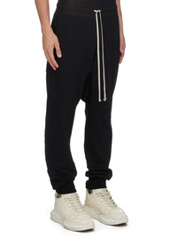 RICK OWENS FW24 PORTERVILLE PRISONER DRAWSTRING IN BLACK COMPACT COTTON JERSEY THESE PRISONER DRAWSTRING PANTS ARE FULL LENGTH, WITH A RELAXED DROPPED CROTCH, AND SLIM CUT LEGS. THEY HAVE AN ELASTICIZED WAISTBAND WITH DRAWSTRING AND STITCHED FLY, RIBBED ANKLE CUFFS, FRONT SIDE SEAM POCKETS AND SQUARE BACK POCKETS WITH FLAPS AND TOPSTITCHING. THEY FEATURE A CURVED YOKE SEAM RUNNING ACROSS THE FRONT AND DOWN EACH LEG THIS HEAVYWEIGHT AND COMPACT COTTON JERSEY HAS A BRUSHED AND SOFT HANDFEEL. THIS JERSEY IS GARMENT DYED. THIS FABRIC IS MADE USING GOTS CERTIFIED ORGANIC COTTON WHICH MEANS THE NATURAL FIBER IS GROWN WITHOUT HARMFUL CHEMICALS, LEAVING OUR SOIL, AIR AND WATER CLEANER FROM CONTAMINATES - COLOR: BLACK - MATERIAL: 100% COTTON - BAND 97% COTTON + 3% ELASTANE - MODEL IS 189CM TALL - MODEL WEARS SIZE S