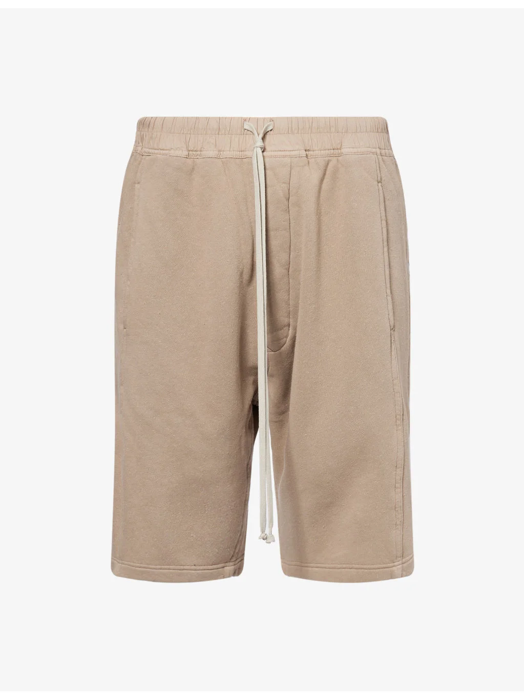 PRODUCT DETAILS - Rick Owens DRKSHDW cotton-jersey shorts - 100% cotton; contrast 97% cotton, 3% elastane - Relaxed fit, high-rise, contrast drawstring elasticated waistband, two slip pockets at front, hook-and-loop tape pockets at back, popper fastening at sides, brushed interior - Hand wash cold - Made in Italy - Model is 6ft 2in/1.88m and wears a size medium - Midweight, stretchy Ref: R04507272