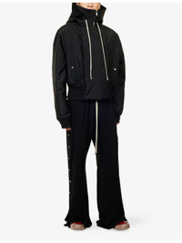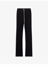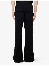 PRODUCT DETAILS - Rick Owens DRKSHDW cotton-jersey jogging bottoms - 100% cotton - Relaxed fit, high-rise, wide leg, drawstring elasticated waistband, two slip pockets and concealed button fly-fastening at front, two hook-and-loop tape pockets at back, popper fastening at sides, flared cuffs - Hand wash cold - Made in Italy - Model is 6ft 2in/1.88m and wears a size medium - Lightweight, stretchy Ref: R04507269