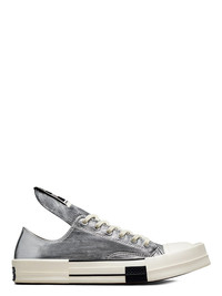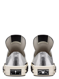 CONVERSE X DRKSHDW TURBODRK IN SILVER AND WHITE SILVER LACQUERED TWILL LACED SHOE BASED ON THE CLASSIC CONVERSE 70’S CHUCKS, FEATURES A SIGNATURE DRKSHDW ELONGATED TONGUE WITH A CUSTOM BRANDED WRAP AROUND WOVEN LABEL BEARING THE MODEL NAME. CONTRAST STITCHING AND LACES. SIGNATURE RICK OWENS MOLDED RUBBER HEEL AND MOLDED RUBBER TOE CAP ARE SUPERIMPOSED ONTO THE CLASSIC 70’S CHUCKS RUBBER SOLE THIS VERSION FEATURES AN ADDED SQUARED TOE VENT LIFTED FROM SIGNATURE RICK OWENS PLATFORM BOOTS TOE VENTS CUSTOM MOLDED DRKSHDW LICENSE PLATE WITH PENTAGRAM COLLAB LOGO. CONVERSE ALL STAR LOGO ON SIDE SILVER LACQUERED UPPER AND WHITE RUBBER SOLE. DELIVERED WITH WHITE LACES AND EXTRA BLACK LACES - COLOR: SILVER AND WHITE - MATERIAL: UPPER 100% COTTON - INSOLE: 100% COTTON - SOLE 100% RUBBER PLEASE NOTE THE SHOE SIZE LISTED ON THE PRODUCT DESCRIPTION PAGE CORRESPONDS TO USA MEN'S SHOE SIZE WE STRONGLY RECOMMEND OUR CLIENTS TO CHECK THE SIZE CHART BEFORE PLACING AN ORDER TO AVOID ANY POTENTIAL INCONVENIENCE FEEL FREE TO CONTACT CUSTOMERCARE@RICKOWENS.EU FOR ANY ASSISTANCE