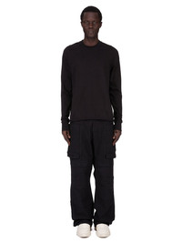 DRKSHDW FW25 CONCORDIANS CREWNECK SWEAT IN BLACK COMPACT HEAVY JERSEY THIS CREWNECK SWEAT IS BELOW HIP LENGTH WITH LONG SLEEVES. IT HAS A RIBBED CREWNECK, CUFFS AND A RAW CUT HEM. IT FEATURES THE SIGNATURE LEVEL SHOULDER SEAMS AND SINGLE SEAM RUNNING DOWN THE CENTRE BACK SPINE. THIS HEAVYWEIGHT AND COMPACT COTTON JERSEY HAS A BRUSHED AND SOFT HANDFEEL. THIS JERSEY IS GARMENT DYED THIS FABRIC IS MADE USING GOTS CERTIFIED ORGANIC COTTON WHICH MEANS THE NATURAL FIBER IS GROWN WITHOUT HARMFUL CHEMICALS, LEAVING OUR SOIL, AIR AND WATER CLEANER FROM CONTAMINATES COLOR: BLACK MATERIAL:100% COTTON MODEL IS 189CM TALL MODEL WEARS SIZE S