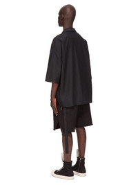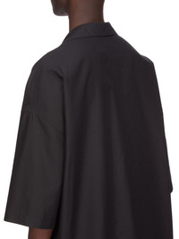 DRKSHDW SS25 HOLLYWOOD MAGNUM TOMMY SHIRT IN BLACK TENCEL RIPSTOP THIS MAGNUM TOMMY SHIRT IS BELOW HIP LENGTH WITH AN OVERSIZE FIT, AND ELBOW LENGTH SLEEVES WITH A DROPPED ARMHOLE. IT HAS A CENTRE FRONT OPENING WITH METAL BUTTONS, AND A CLASSIC FLAT COLLAR. IT HAS A HEMLINE WITH BEVELED SIDE SPLITS AND TWO CHEST POCKETS WITH BEVELED FLAPS AND TOPSTITCHING. IT FEATURES THE SIGNATURE LEVEL SHOULDER SEAMS AND A BACK YOKE THIS LIGHTWEIGHT AND AIRY RIP STOP HAS A SOFT TECHNICAL HAND FEEL AND A WATER REPELLENT FINISH. TENCEL IS A CELLULOSE BASED FIBRE MADE FROM CERTIFIED WOOD PULP. IT IS PRODUCED IN A CLOSED LOOP PROCESS RECOVERING 99,8% OF WATER AND SOLVENTS USED TO PRODUCE IT. TENCEL IS BIODEGRADABLE COLOR: BLACK MATERIAL: 100% TENCEL MODEL IS 189CM TALL MODEL WEARS SIZE S