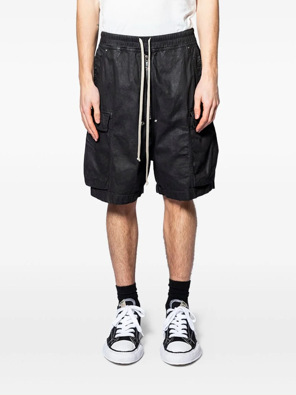 Cargobela drawstring-waist cargo shorts Highlights - Black - Drawstring fastening - Side cargo pockets - Rear flap pockets - Elasticated waistband Made in Italy Composition Fabric 100%