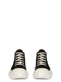 DRKSHDW SS25 HOLLYWOOD ABSTRACT LOW SNEAK IN BLACK/MILK/MILK 13OZ OVERDYED DENIM THESE ABSTRACT LOW SNEAKS ARE BELOW ANKLE HEIGHT AND FEATURE SIX EYELETS, LACES, TOE CAPS AND A VOLUMINOUS RUBBER ABSTRACT BUMPER SOLE THIS MEDIUMWEIGHT 13OZ DENIM IS OVERDYED AND HAS A SOFT AND WASHED HANDFEEL. THIS FABRIC IS MADE USING GOTS CERTIFIED ORGANIC COTTON WHICH MEANS THE NATURAL FIBER IS GROWN WITHOUT HARMFUL CHEMICALS, LEAVing OUR SOIL, AIR AND WATER CLEANER FROM CONTAMINATES COLOR: BLACK/MILK/MILK MATERIAL: UPPER 100% COTTON TOE 70% POLYURETHANE + 30% VISCOSE LINING 100% COTTON MID SOLE 100% THERMOPLASTIC RUBBER SOLE 100% E.V.A PLATFORM AT HEEL 7CM / AT TOE 5CM
