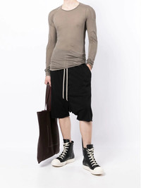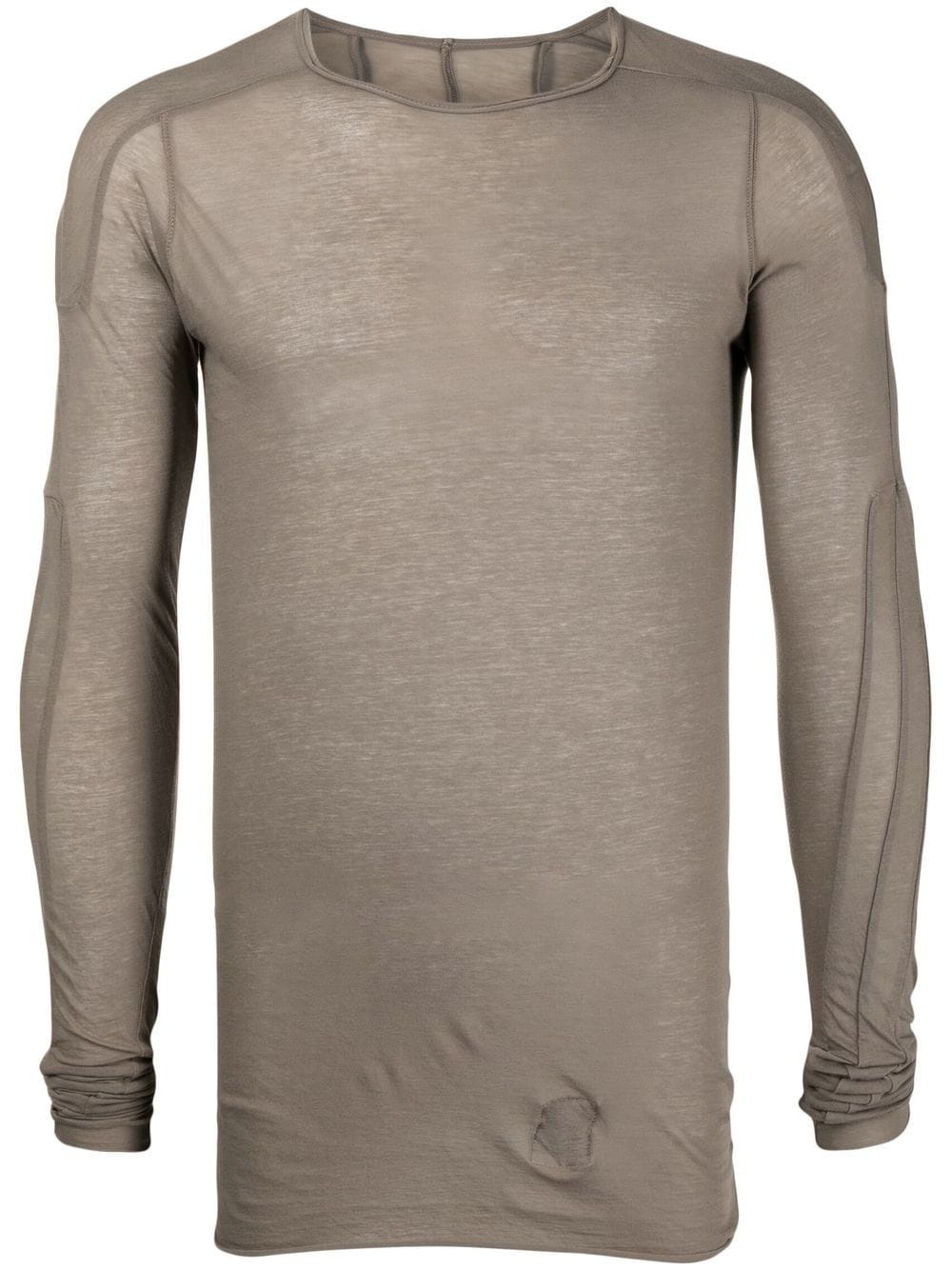 cotton Scarification ruched T-shirt from RICK OWENS DRKSHDW featuring ash grey, ruched bodice, round neck, long sleeves and straight hem. Highlights - Cotton - Ash grey - Ruched bodice - Round neck - Long sleeves - Straight hem Made in Italy Composition outer: Cotton 100%