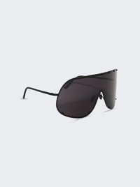 Details - Shield sunglasses with a surgical stainless steel frame - Voluminous curved black lens - Rubber nose pads - 100% UV protection - Material: Stainless Steel, Nylon Vendor Color Code: Brand Style: RG0000006 GBLKB Designer/Brand: RICK OWENS DRKSHDW