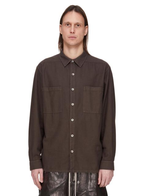 DRKSHDW FW25 CONCORDIANS LS LARRY JUMBO FOGPOCKET IN DRKDUST COTTON TELA THIS LS LARRY JUMBO FOGPOCKET SHIRT IS HIP-LENGTH AND HAS LONG SLEEVES WITH SNAP CUFFS. IT IS OVERSIZED AND HAS A DEEP V NECK WITH CONCEALED, FUNCTIONAL, SNAP CLOSURES. IT FEATURES TWO FOG BREAST POCKETS WITH A VERTICAL OPENING AND INTERNAL SNAP. IT HAS LEVEL SHOULDER SEAMS, A BACK YOKE WITH COTTON WEBBING STRAP WITH RIVET DETAIL AND A HEMLINE WITH BEVELED SIDES. THIS LIGHTWEIGHT COTTON TELA FABRIC IS GARMENT DYED WITH A SOFT WASHED HANDFEEL COLOR: DRKDUST MATERIAL: 100% COTTON MODEL IS 189CM TALL MODEL WEARS SIZE S