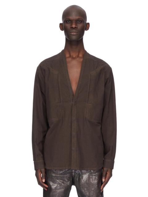 DRKSHDW FW25 CONCORDIANS MAGNUM TOMMY SHIRT IN BLACK WASHED FOIL STRETCH DENIM THIS MAGNUM TOMMY SHIRT IS BELOW HIP LENGTH WITH AN OVERSIZE FIT AND HAS ELBOW LENGTH SLEEVES WITH A DROPPED ARMHOLE. IT HAS A CENTRE FRONT OPENING WITH METAL BUTTONS, A CLASSIC FLAT COLLAR AND A HEMLINE WITH BEVELED SIDE SPLITS. IT FEATURES THE SIGNATURE LEVEL SHOULDER SEAMS AND A BACK YOKE. THIS LIGHTWEIGHT WASHED FOIL DENIM IS MADE ON A 10OZ BLACK AND NATURAL STRETCH DENIM. THE READY GARMENT IS BLEACHED INTO A DIRTY PEARL COLOR, A BLACK FOIL OVERLAY IS THEN APPLIED AND FINALLY THE GARMENT IS WASHED TO ACHIEVE THE IRREGULAR LOOK THE NATURAL ASPECTS OF THIS TREATMENT MEANS THE FOIL APPLICATION IS IRREGULAR AND HAS PEELED OFF IN CERTAIN AREAS AND WILL CONTINUE TO DO SO WITH WEAR AND ABRASION. THIS IS AN INHERENT CHARACTERISTIC OF THIS TYPE OF TREATMENT AND IS A DESIRED VISUAL ASPECT WHICH ADDS TO THE UNIQUENESS OF EACH PIECE THIS GARMENT IS TREATED IN AN ITALIAN WASH HOUSE BASED IN THE VENETO AREA OF ITALY, THAT PRODUCES IN SMALLER TREATMENT BATHS TO REDUCE WATER WASTE AND UTILIZE A WATER PURIFYING PROCESS THAT ENABLES THEM TO RECYCLE A PORTION OF THE WATER USED. ALL OF OUR DENIM WASHES ARE ZDHC CERTIFIED COLOR: BLACK WASHED FOIL MATERIAL: 91% COTTON + 6% ELASTOMULTIESTER + 3% RUBBER FIBERMODEL IS 189CM TALL MODEL WEARS SIZE S