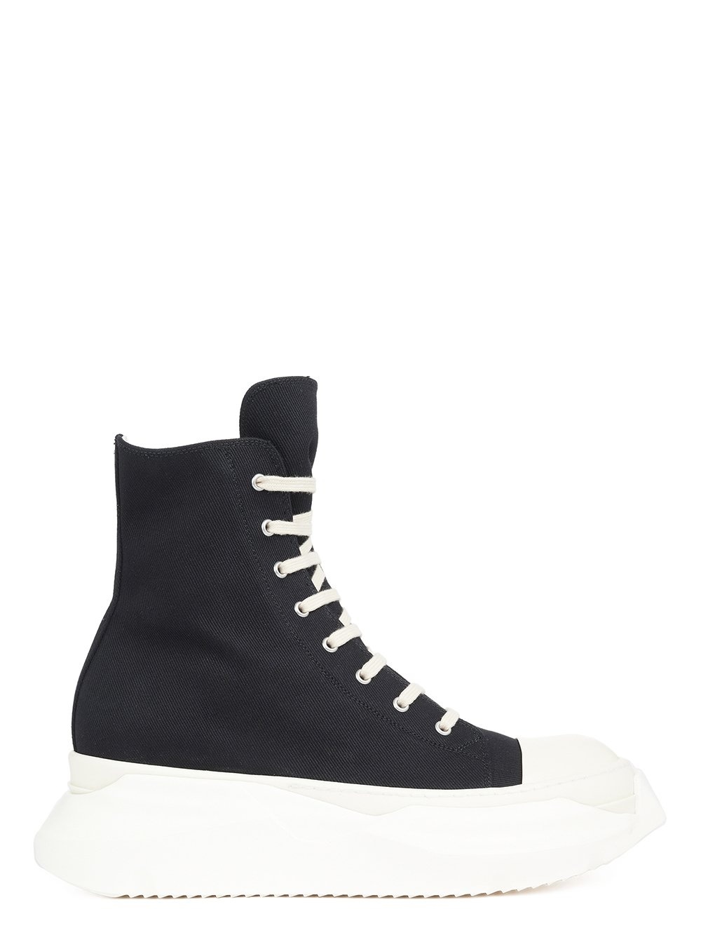 DRKSHDW SS22 FOGACHINE ABSTRACT SNEAKERS IN 13OZ DENIM THESE ABSTRACT SNEAKERS ARE ABOVE ANKLE HEIGHT AND FEATURE EIGHT EYELETS, LACES, A ZIPPER ON THE INSIDE ANKLE FOR EASY FASTENING, TOE CAPS AND A VOLUMINOUS RUBBER ABSTRACT BUMPER SOLE - MATERIAL:UPPER: 100% COTTON - TOE: 100% CALF LEATHER - LINING: 100% COTTON - MID SOLE: 100% THERMOPLASTIC RUBBER - SOLE: 100% EVA