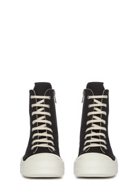 DRKSHDW FW25 CONCORDIANS SNEAKS IN BLACK/MILK/MILK 13OZ OVERDYED DENIM THESE SNEAKS ARE ABOVE ANKLE HEIGHT AND FEATURE EIGHT EYELETS, LACES, A ZIPPER ON THE INSIDE ANKLE FOR EASY FASTENING, TOE CAPS AND SHARK TOOTH SOLES. THIS MEDIUMWEIGHT 13OZ DENIM IS OVERDYED AND HAS A SOFT AND WASHED HANDFEEL THIS FABRIC IS MADE USING GOTS CERTIFIED ORGANIC COTTON WHICH MEANS THE NATURAL FIBER IS GROWN WITHOUT HARMFUL CHEMICALS, LEAVING OUR SOIL, AIR AND WATER CLEANER FROM CONTAMINATES COLOR: BLACK/MILK/MILK MATERIAL: UPPER 100% COTTON TOE 70% POLYURETHANE + 30% VISCOSE LINING 100% COTTON SOLE HEIGHT 3.5CM