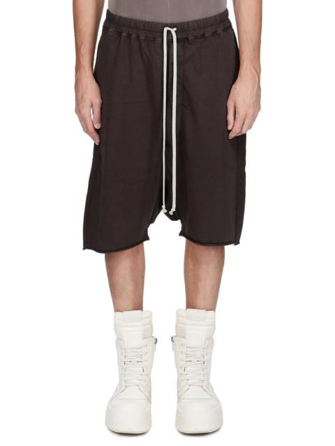 DRKSHDW FW25 CONCORDIANS DRAWSTRING PODS IN DARKDUST COMPACT HEAVY JERSEY THESE DRAWSTRING PODS ARE BELOW KNEE LENGTH WITH A DROPPED CROTCH. THEY HAVE AN ELASTICIZED WAISTBAND WITH DRAWSTRING AND STITCHED FLY AND SIDE POCKETS. THEY HAVE A SEAMED CENTRE BACK PANEL AND BACK POCKETS WITH FLAPS AND TOPSTITCHING. THIS HEAVYWEIGHT AND COMPACT COTTON JERSEY HAS A BRUSHED AND SOFT HANDFEEL. THIS JERSEY IS GARMENT DYED THIS FABRIC IS MADE USING GOTS CERTIFIED ORGANIC COTTON WHICH MEANS THE NATURAL FIBER IS GROWN WITHOUT HARMFUL CHEMICALS, LEAVING OUR SOIL, AIR AND WATER CLEANER FROM CONTAMINATES COLOR: DARKDUST MATERIAL: 100% COTTON MODEL IS 189CM TALL MODEL WEARS SIZE S