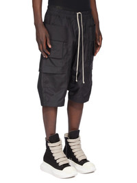 DRKSHDW FW25 CONCORDIANS CREATCH CARGO PODS IN BLACK NYLON CANVAS THESE CREATCH CARGO PODS. ARE BELOW KNEE LENGTH, WITH A DROPPED CROTCH AND WIDE CENTRE PANEL. THEY HAVE AN ELASTICIZED WAISTBAND WITH DRAWSTRING AND STITCHED FLY. THEY FEATURE LAYERED FRONT POCKETS WITH SIDE BELT STRAPS WITH SIGNATURE STITCHING LINES AND TWO FLAP POCKETS WITH FLAPS AND TOPSTITCHING. THIS MEDIUMWEIGHT NYLON CANVAS IS COMPACT WITH A SOFT AND TECHNICAL HANDFEEL THIS FABRIC IS MADE USING GRS CERTIFIED RECYCLED NYLON WHICH ENSURES A REDUCTION IN WATER CONSUMPTION, EMISSIONS AND HAZARDOUS WASTE, LESSENING THE DEPENDENCE ON NON-RENEWABLE RESOURCES COLOR: BLACK MATERIAL: 100% NYLON MODEL IS 189CM TALL MODEL WEARS SIZE S