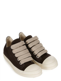 DRKSHDW FW25 CONCORDIANS JUMBOLACE LOW SNEAKS IN DIRTY DARKDUST/MILK/MILK 13OZ OVERDYED DENIM THESE JUMBOLACE LOW SNEAKS ARE UNDER ANKLE HEIGHT AND FEATURE EYELETS, JUMBO LACES, TOE CAPS AND SHARK TOOTH BUMPER SOLES. THIS MEDIUMWEIGHT 13OZ DENIM IS OVERDYED AND HAS A SOFT AND WASHED HANDFEEL THIS FABRIC IS MADE USING GOTS CERTIFIED ORGANIC COTTON WHICH MEANS THE NATURAL FIBER IS GROWN WITHOUT HARMFUL CHEMICALS, LEAVING OUR SOIL, AIR AND WATER CLEANER FROM CONTAMINATES COLOR: DARKDUST/MILK/MILK MATERIAL: UPPER 100% COTTON TOE 70% POLYURETHANE + 30% VISCOSE LINING 100% COTTON SOLE HEIGHT 3.5CM
