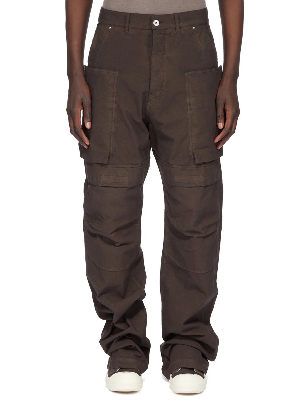 DRKSHDW FW25 CONCORDIANS STEFAN CARGO IN DRKDUST COTTON TELA THIS STEFAN CARGO IS A FULL LENGTH 5-POCKET JEAN WITH A LOW-RISE AND A LOOSE FIT. THEY HAVE A SILVER ZIPPER FLY WITH TOP BUTTON, BELT LOOPS AND POCKET RIVETS. THEY FEATURE SIDE WELT POCKETS WITH RIVETS, OVERLAYED WITH POCKETS WITH SQUARE CORNERS, A BEVELED BOTTOM ON THE FRONT THIGHS WITH LOOPS ALONG WITH LARGE KNEE PATCH POCKETS WITH FLAPS AND REAR POCKETS WITH FLAPS AND SCRATCH CLOSURES. THIS LIGHTWEIGHT COTTON TELA FABRIC IS GARMENT DYED WITH A SOFT WASHED HANDFEEL COLOR: DRKDUST MATERIAL: 100% COTTON MODEL IS 189CM TALL MODEL WEARS SIZE 30
