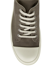 DRKSHDW FW24 PORTERVILLE LOW SNEAKS IN DUST/MILK/MILK 13OZ OVERDYED DENIM THESE LOW SNEAKS ARE UNDER-ANKLE HEIGHT AND FEATURE SIX EYELETS, LACES, TOE CAPS AND SHARK TOOTH SOLES THIS MEDIUMWEIGHT 13OZ DENIM IS OVERDYED AND HAS A SOFT AND WASHED HANDFEEL. THIS FABRIC IS MADE USING GOTS CERTIFIED ORGANIC COTTON WHICH MEANS THE NATURAL FIBER IS GROWN WITHOUT HARMFUL CHEMICALS, LEAVING OUR SOIL, AIR AND WATER CLEANER FROM CONTAMINATES - COLOR: DUST/MILK/MILK - MATERIAL: 100% COTTON