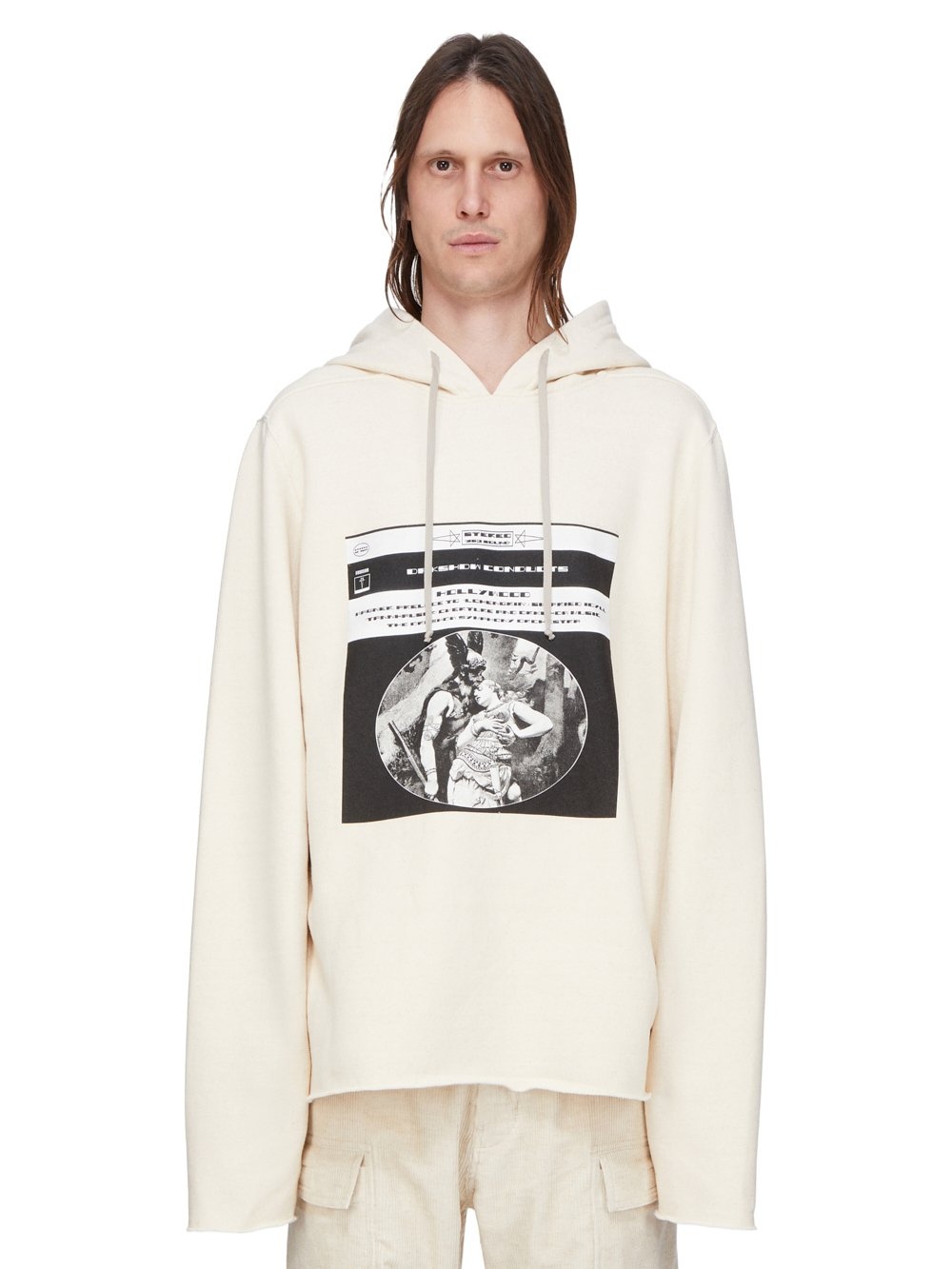DRKSHDW SS25 HOLLYWOOD OVERSIZED HOODIE IN NATURAL/BLACK FURKA SWEATSHIRT THIS OVERSIZED HOODIE IS HIP-LENGTH, WITH A LOOSE FIT AND LONG SLEEVES. IT HAS A HOOD WITH A DRAWSTRING, AND RIBBED CUFFS AND WAISTBAND. IT FEATURES THE SIGNATURE LEVEL SHOULDER SEAMS AND SINGLE SEAM RUNNING DOWN THE CENTRE BACK SPINE. THIS VERSION FEATURES THE OPERA PRINT THIS HEAVYWEIGHT COTTON SWEATSHIRT JERSEY HAS A SOFT AND WASHED HANDFEEL. THE COLOR OF THIS JERSEY IS NATURAL WITH VISIBLE SLUBS AND IMPURITIES NATURAL TO THE COTTON FIBRE. THIS JERSEY IS GARMENT WASHED. THIS FABRIC IS MADE USING GOTS CERTIFIED ORGANIC COTTON WHICH MEANS THE NATURAL FIBER IS GROWN WITHOUT HARMFUL CHEMICALS, LEAVING OUR SOIL, AIR AND WATER CLEANER FROM CONTAMINATES COLOR: NATURAL/BLACK MATERIAL: 100% COTTON MODEL IS 189CM TALL MODEL WEARS SIZE S