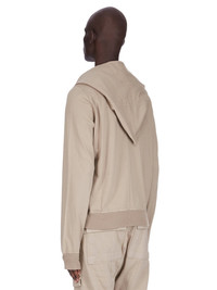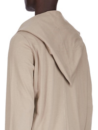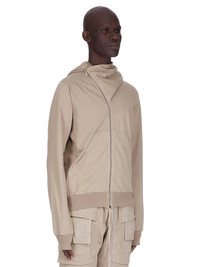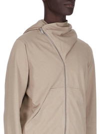 DRKSHDW FW25 CONCORDIANS MOUNTAIN HOODIE IN PEARL COMPACT HEAVY JERSEY THIS MOUNTAIN HOODIE IS ABOVE HIP LENGTH WITH LONG SLEEVES. IT HAS A CURVED ASYMMETRICAL ZIPPER CLOSURE, A SMALL FUNNEL NECK AND A LARGE POINTED HOOD. IT HAS TWO FRONT PATCH POCKETS, RIBBED CUFFS AND WAISTBAND SIGNATURE SINGLE SEAM RUNNING DOWN THE CENTRE BACK SPINE. THIS HEAVYWEIGHT AND COMPACT COTTON JERSEY HAS A BRUSHED AND SOFT HANDFEEL. THIS JERSEY IS GARMENT DYED THIS FABRIC IS MADE USING GOTS CERTIFIED ORGANIC COTTON WHICH MEANS THE NATURAL FIBER IS GROWN WITHOUT HARMFUL CHEMICALS, LEAVING OUR SOIL, AIR AND WATER CLEANER FROM CONTAMINATES COLOR: PEARL MATERIAL: 100% COTTON MODEL IS 189CM TALL MODEL WEARS SIZE S
